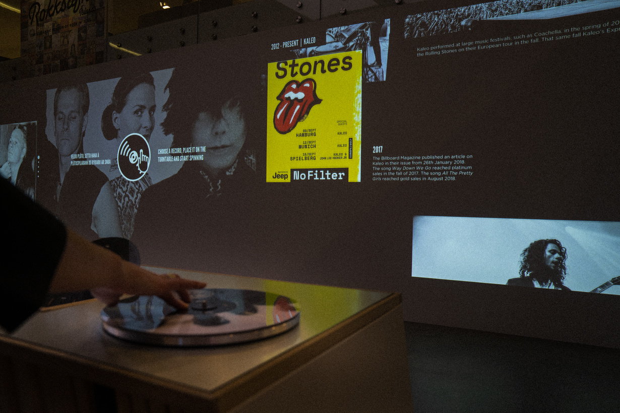 The Gagarin team, who many are great music lovers and instrumentalists welcomed this assignment warm-heartedly and developed a new installation The Record Player in close collaboration with the Museum’s curators. The new installation takes over the largest wall of the rock exhibition spanning over 12 meters in width and has become a centerpiece in the Museum.