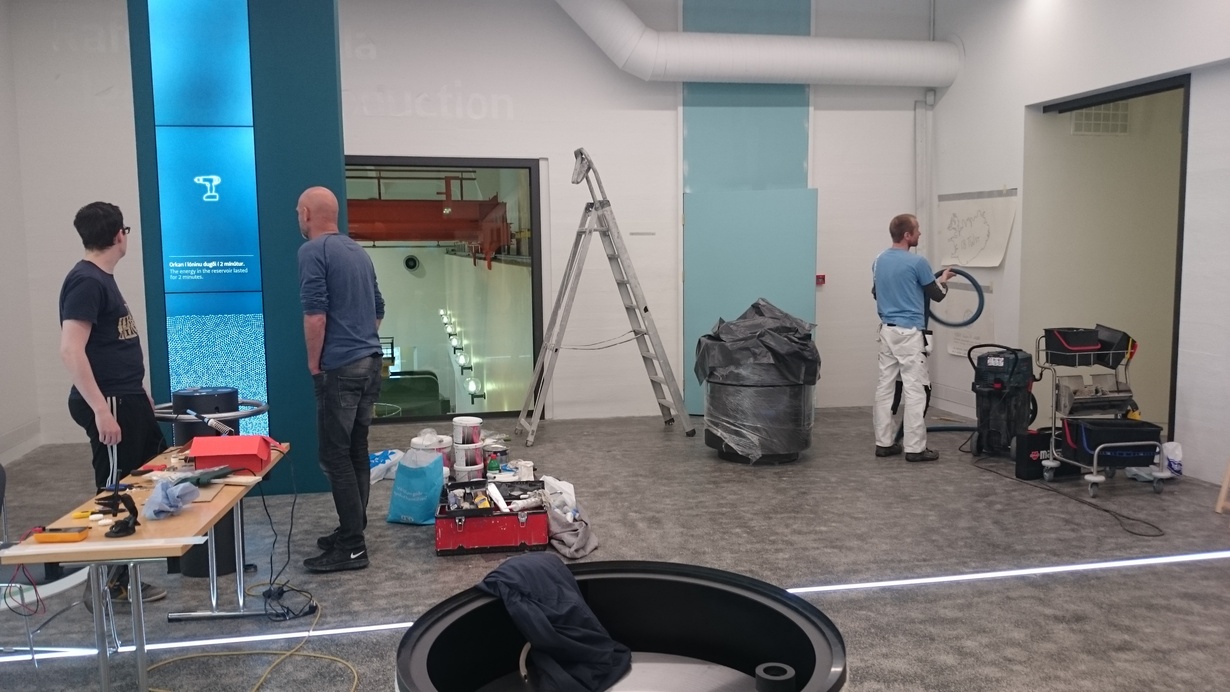 Transforming an old power station into a modern exhibition space was no small task. It required heavy construction work and a wide range of expertise. Landsvirkjun assembled a dedicated team, led by project manager Davíð Jónsson, who began by tearing down walls and building new floors to fit our and Tvíhorf’s designs.