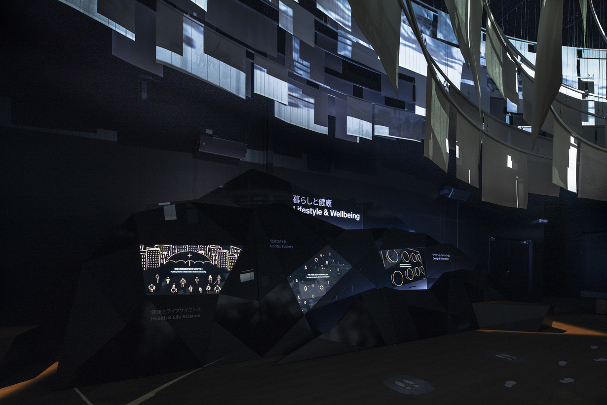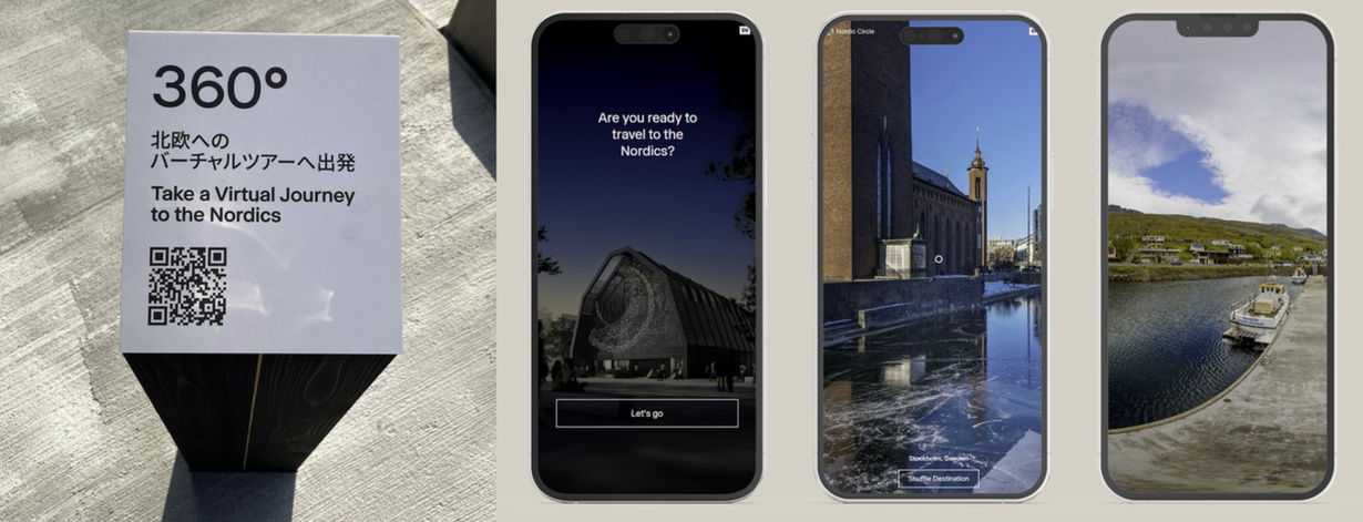 Before entering the pavilion, guests are offered a ‘Nordic Tasting Menu’—an interactive 360° phone experience that lets visitors look into our region through their own screen. This first layer introduces them to our landscapes, societies and curious facts in a playful and personal way.