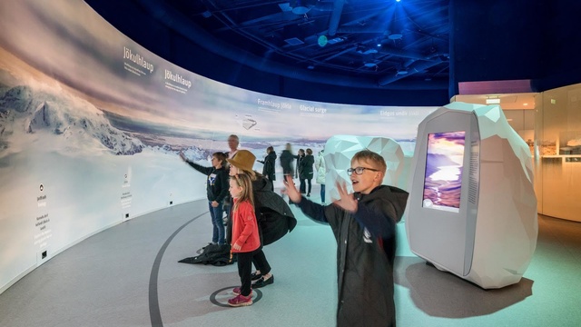 You can present text in two languages on the interactive round table and add video, images and audio to the 3D environment that displays the timeline.