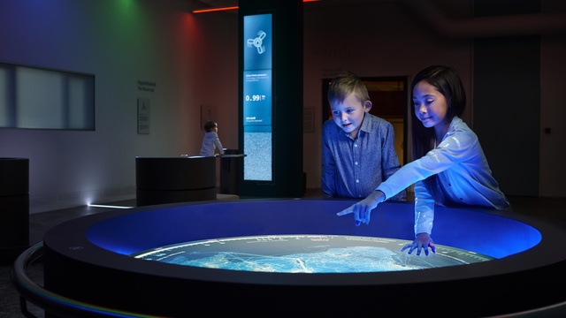 Wheel of Time is an interactive table where users turn the rim to move a timeline along. The round table presents a fluid visualization of events at key points, which inspires users to explore the subject at their own pace. You can scale this multi-user application to suit different spaces, stories and environments.