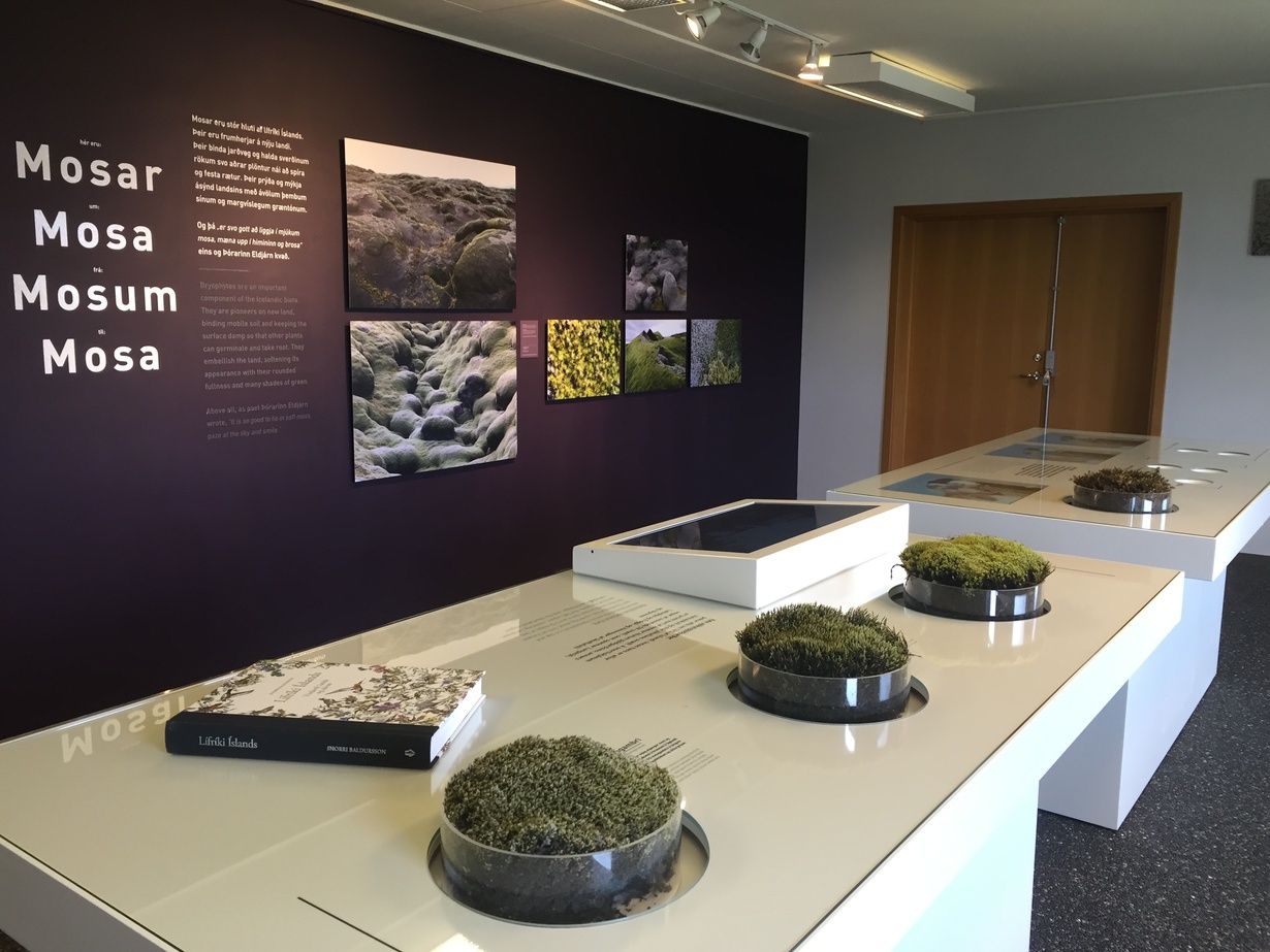 Bryophytes are prominent in the vegetation of the northern hemisphere. In Iceland their role is especially important in the volcanic belt west of Vatnajökull ice cap, the largest glacier in Europe. In summer 2015 Gagarin in collaboration with Kría Benediktsdóttir designed an exhibition on the volcanic zone near Laki and on the bryophytes which adapt to that rough lava environment. The research and scientific information disseminated in the exhibition was carried out by Snorri Baldursson.
