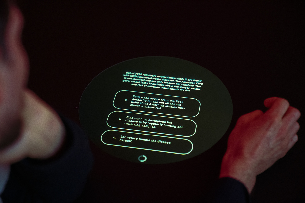 The National Park of Hardangervidda is known for its vast nature and roaming reindeer. However, its future is a much-debated topic. This virtual role-playing game takes visitors on a 30-minute Virtual Reality trip through scientific data, future projections, and finally, an in-person round-table debate from different points of view about the park's future.