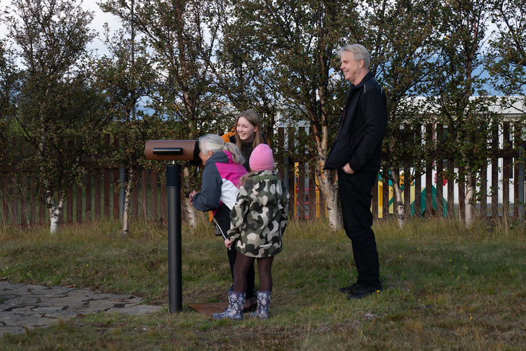 Nearby, Gagarin also designed the interactive exhibition Back to Hofsstaðir, where visitors can explore the history of Garðabær from the settlement period to the present day. At the centre of the experience is a tactile installation inspired by a historic grinding stone discovered at the site. By rotating the stone, visitors “grind” their way through the timeline of local history, physically navigating the stories of the landscape and the people who lived there.