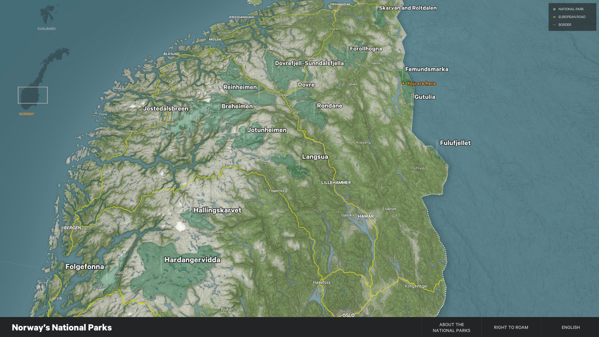 Gagarin designed and produced an interactive map installation featuring the spectacular national parks of Norway. Today there are 44 national parks in Norway, of which 37 are on the mainland and 7 on Svalbard. The national parks are an integrated part of the Norwegian outdoor life and an important part of the fast-growing nature-based tourism in the country.