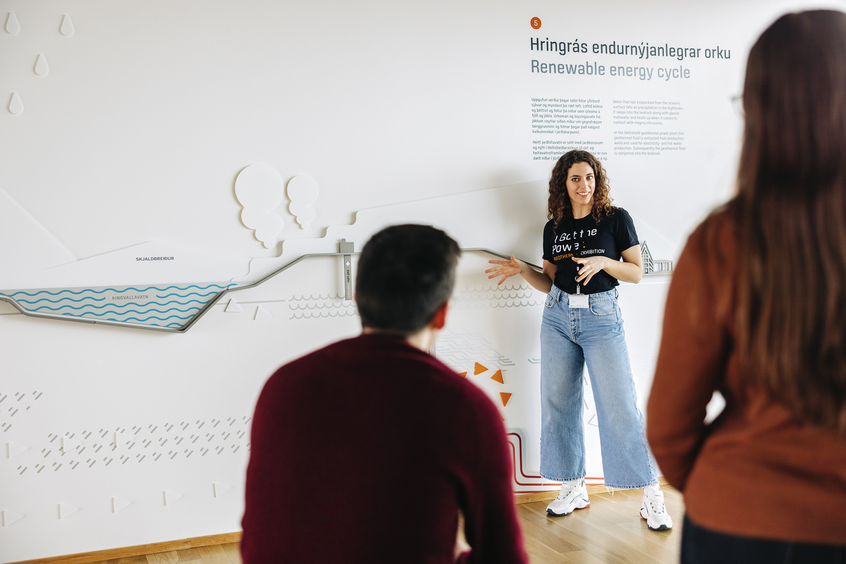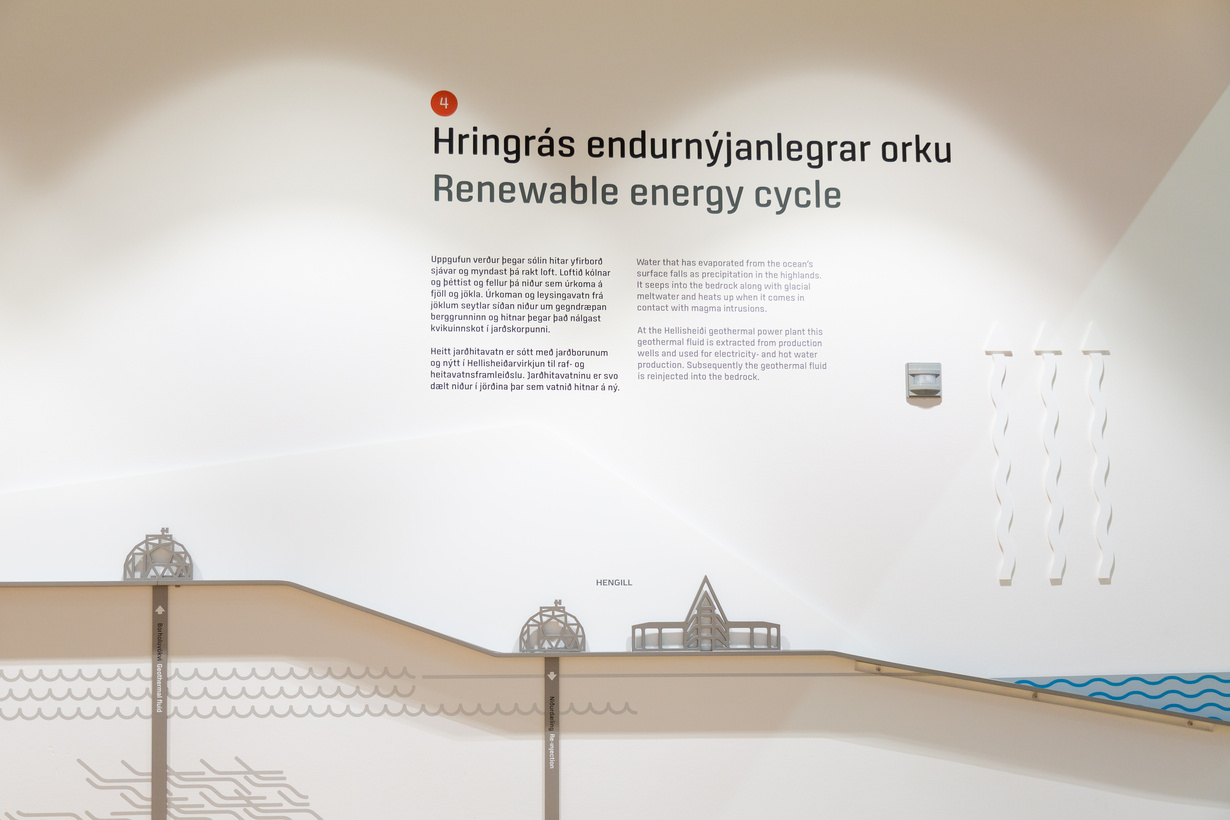 Here, visitors explore the future of environmental sustainability through interactive exhibitions which explain the geothermal energy production process. These include a history of heating systems in Iceland, an interactive exhibit showing the different functions of the plant, an exploration of how geothermal water is used to produce electricity and how cold water is heated up at the Hellisheidi Power Plant and then used for central heating in Reykjavik. Furthermore, the exhibitions explain how the environmental impact of geothermal energy is reduced in the Geothermal Park.