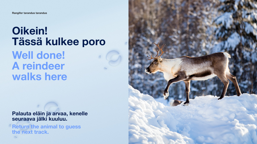 In the second installation, visitors get to guess the animal’s tracks by choosing a figure. Aimed at children, the installation encourages them to find the right answer by giving hints towards the correct animal.