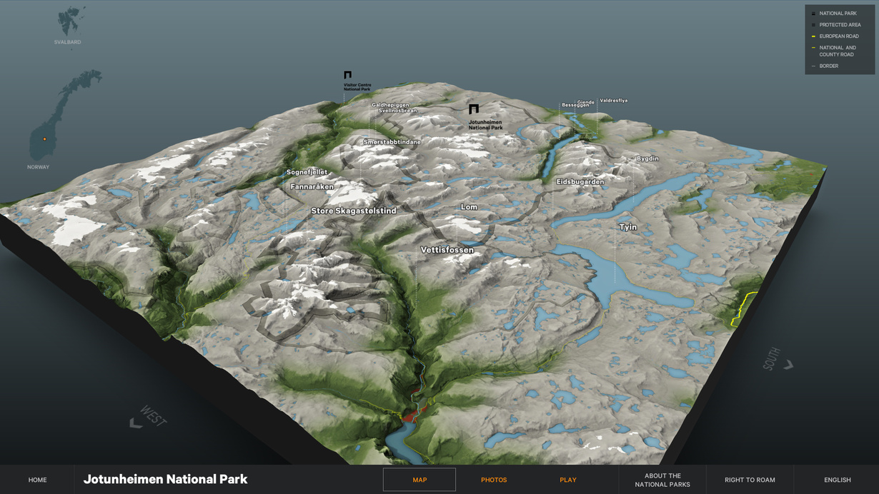 Gagarin designed and produced an interactive map installation featuring the spectacular national parks of Norway. Today there are 44 national parks in Norway, of which 37 are on the mainland and 7 on Svalbard. The national parks are an integrated part of the Norwegian outdoor life and an important part of the fast-growing nature-based tourism in the country.
