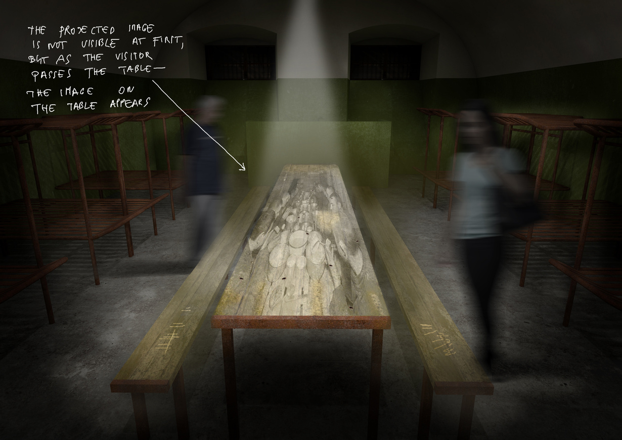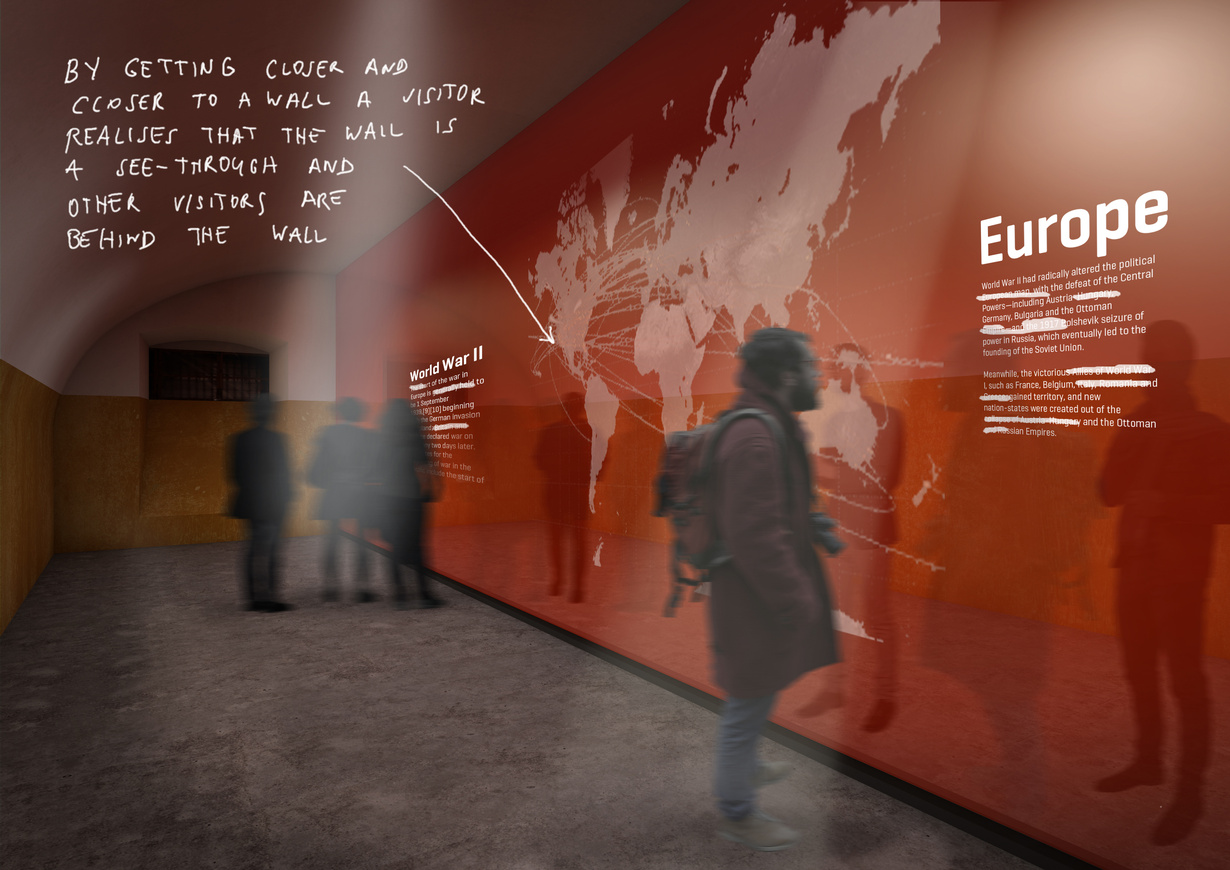 The author has made sense of the building in such a way that both old and new would function side by side. This applies within the building, where authors see completely unrenovated rooms above which visitors seem to float on purpose-built passageways, alongside rooms designed in a contemporary fashion. The ideas for the exhibition are very well thought out and their implementation is innovative. Jury comment