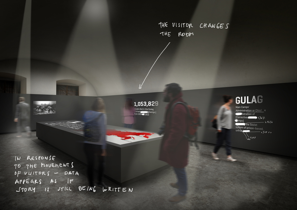 Gagarin, together with Tvíhorf architects and H2E exhibition designers, have been awarded for their submission to the competition to design a new museum in Tallinn, the Red Terror – a Museum for the Crimes of Communism.