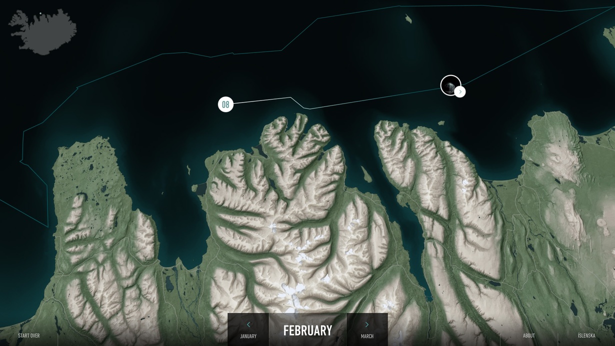 The Icelandic Seal Center located in Hvammstangi has clear mission to research, investigate and exhibit its findings about the seal population that is found around Iceland. In the autumn of 2016 the scientists glued GPS based trackers on the newly born, and often very reclusive, grey seal cubs to be better able to understand their behavior. When it came time to share the findings with the public they contacted us in 2017.
